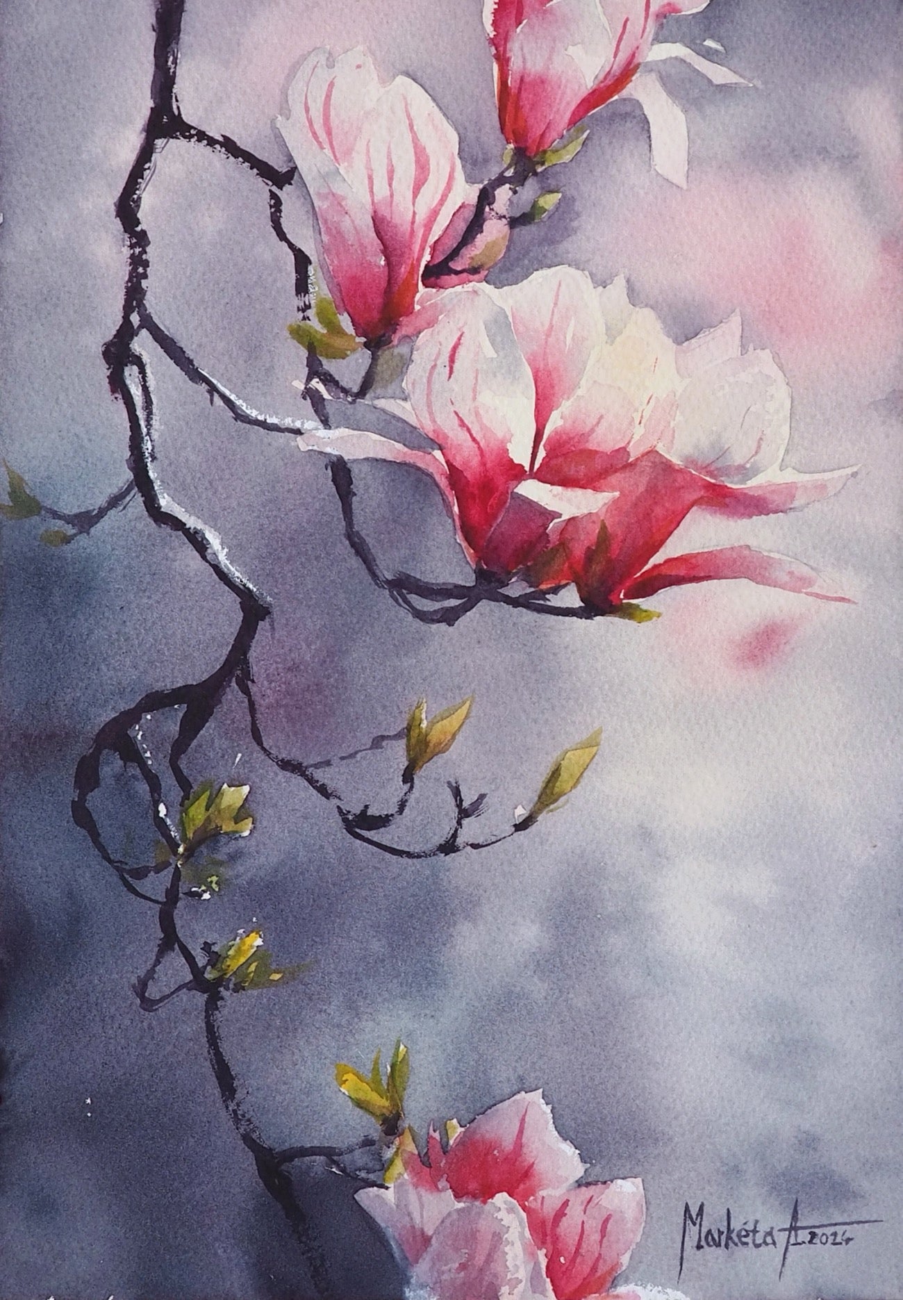 Magnolia in Bloom I Original Painting | 23×31 cm